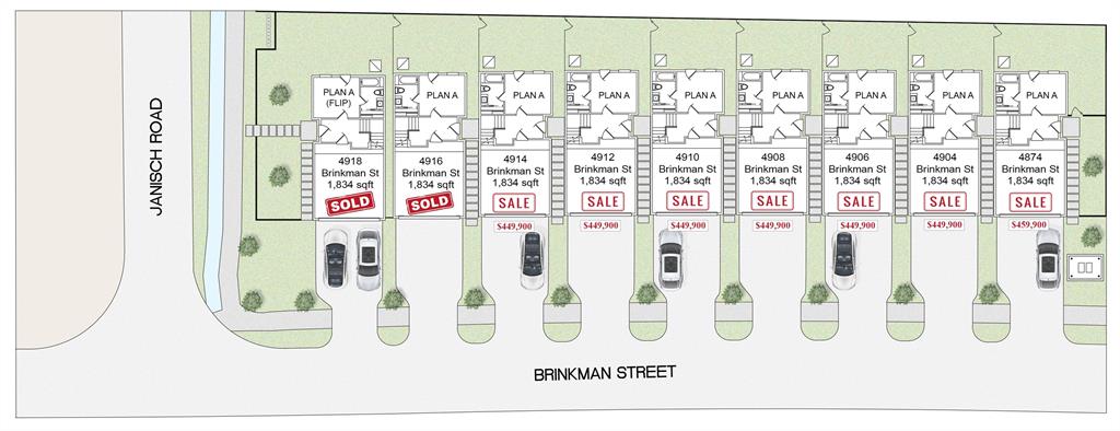 9 UNITS, Janisch Landing Houses—where luxury meets affordability in the charming Shepherd Oak. These brand-new, three-story single-family homes are designed to embody the pinnacle of modern living. With their exquisite high-end finishes and choice of elegant navy or black finishing, these residences offer refined sophistication at an accessible price. Plan A includes 3 bedrooms, 3.5 bathrooms, and 1,834 square feet of beautifully appointed living space. Experience luxury with features such as opulent baths, an oversized shower, and impressive high ceilings. Nestled within a secure, exclusive community, these homes provide both tranquility and privacy. Enjoy the convenience of being within walking distance to a park and playground, while still having easy access to the vibrant city life. Each home is thoughtfully designed with energy efficiency in mind, featuring LED lighting, wiring for electric vehicle (EV) and upgraded epoxy flooring in the garage to ensure low living costs.